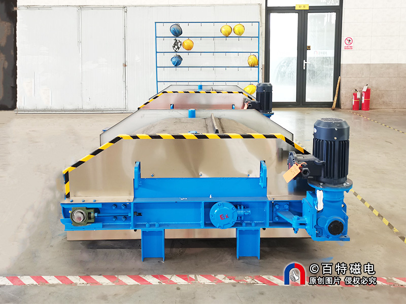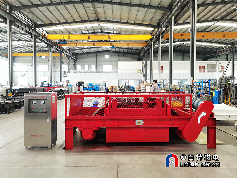 RCDD 电磁自卸式除铁器在 RCDB 基础上增加自动卸铁机构,由驱动滚筒、卸铁皮带及配套电控系统组成,实现连续自动除铁。采用腰鼓形滚筒与特制全密封轴承座,具有一定自动纠偏作用,有助于改善皮带运行稳定性,支持长期连续作业。